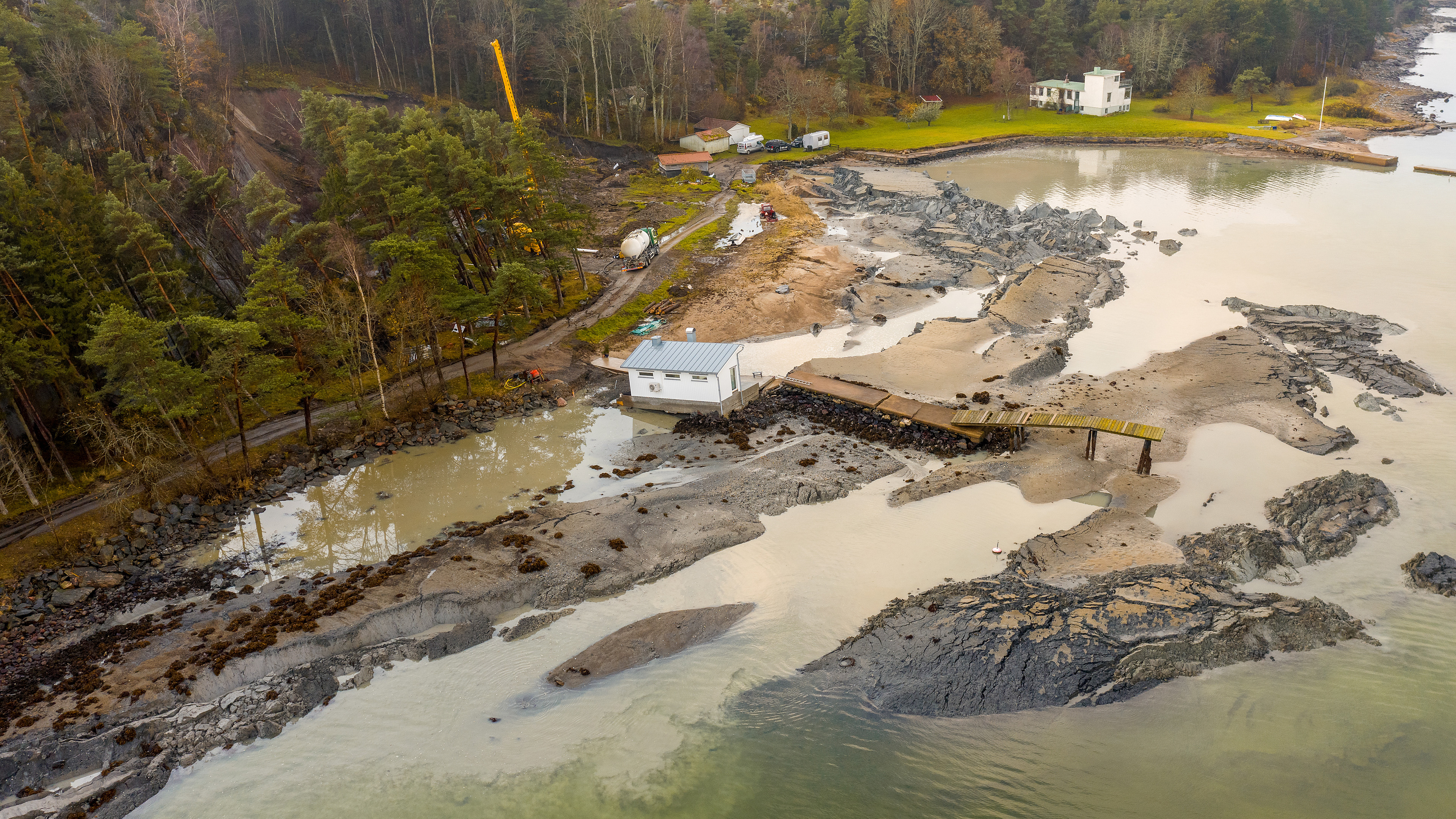 Skredet påverkade mark längs en sluttning mot Älgöfjorden. Området kännetecknas av lerlager med varierande fasthet, där kvicklera förekom i vissa delar.